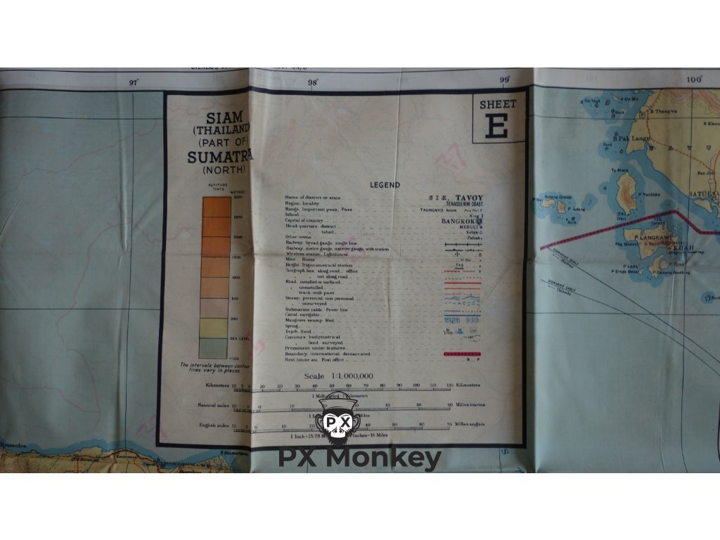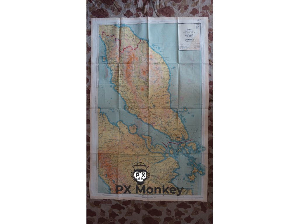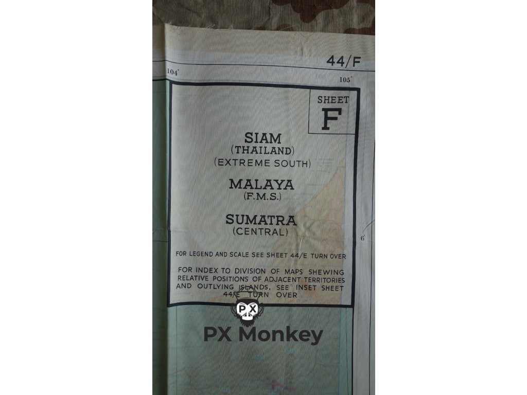 Velmi pěkná mapa tištěná na textilní podklad 44/E Siam (Thailand) Sumatra (North). Tisk je oboustranný.