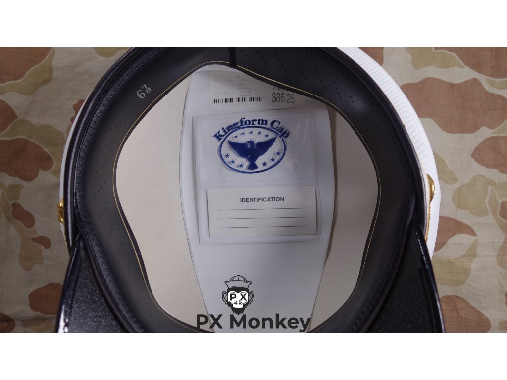 Téměř nepoužitá bílá čepice pro důstojníky USMC s nepromokavým návlekem. Velikost 6 7/8.