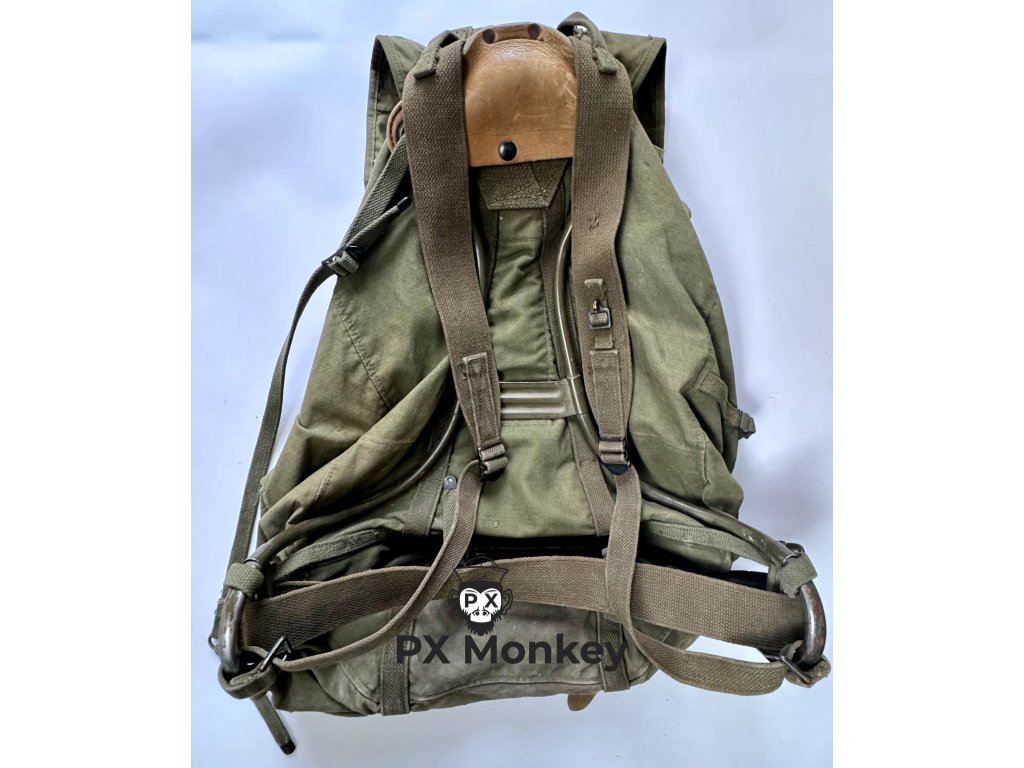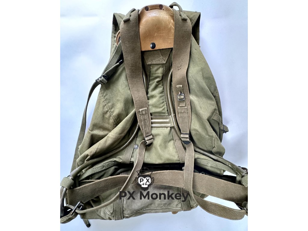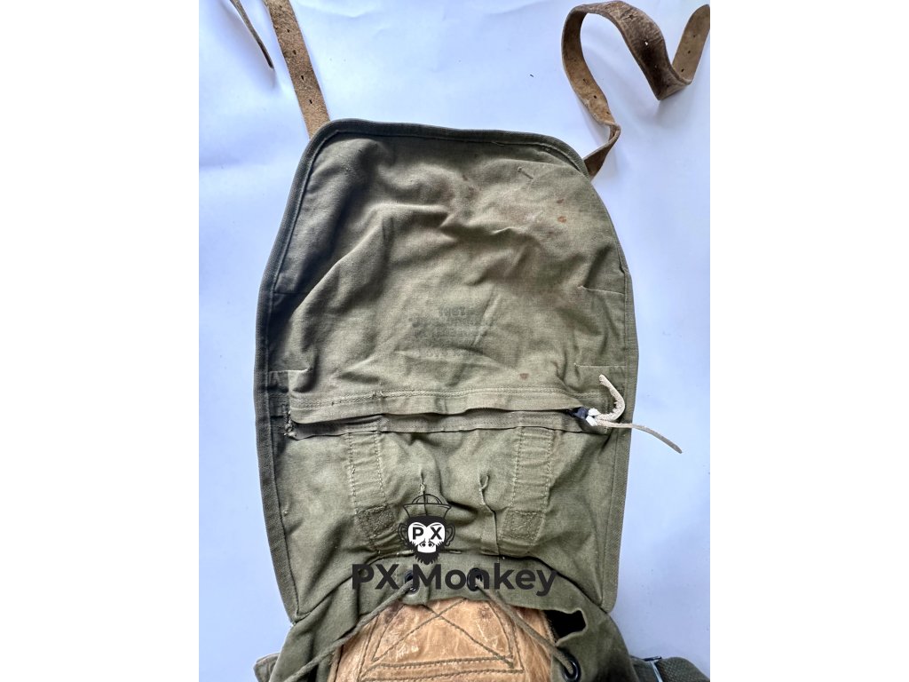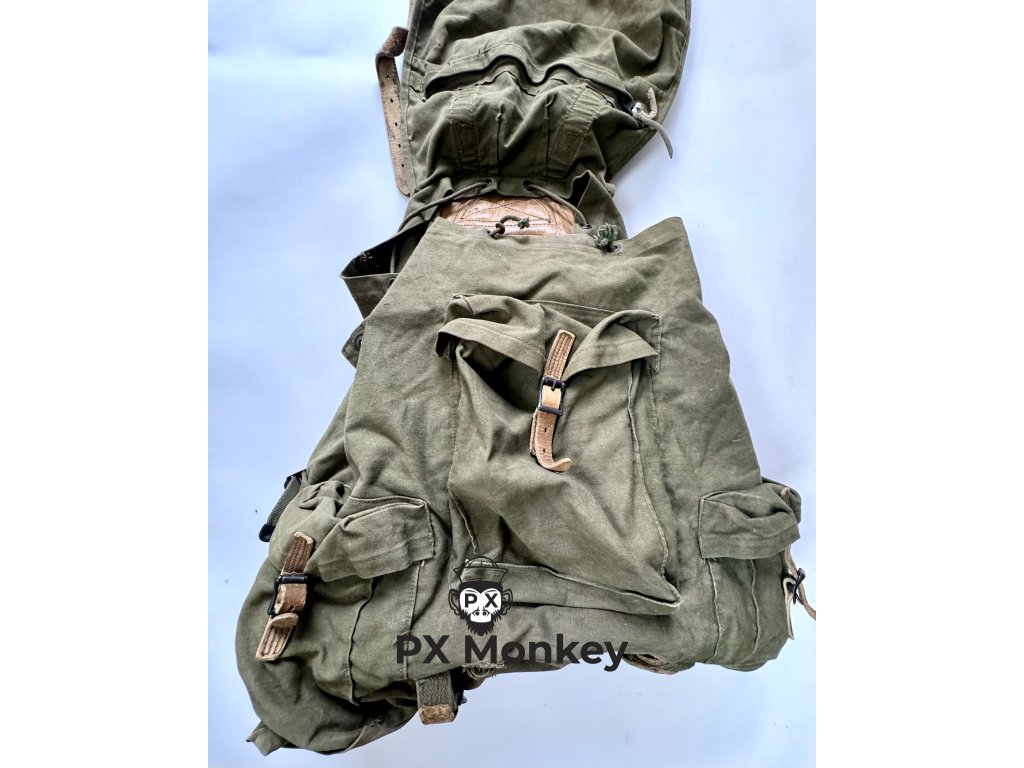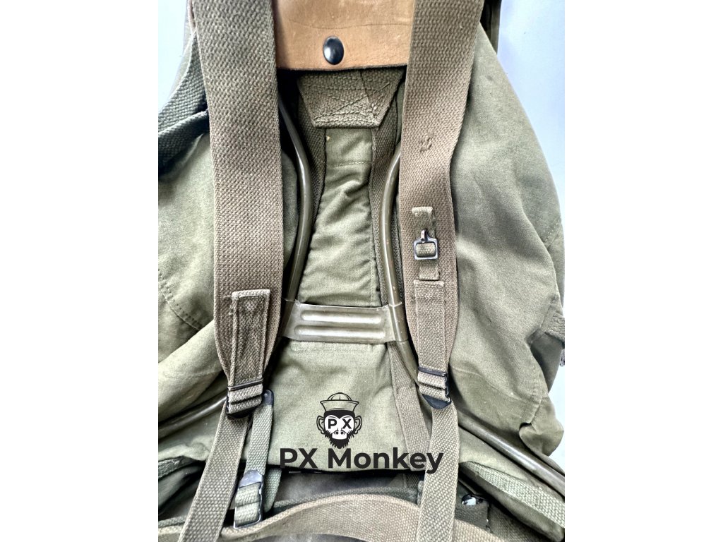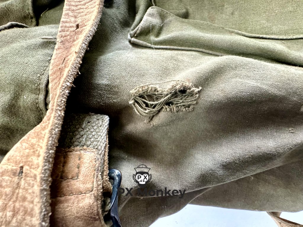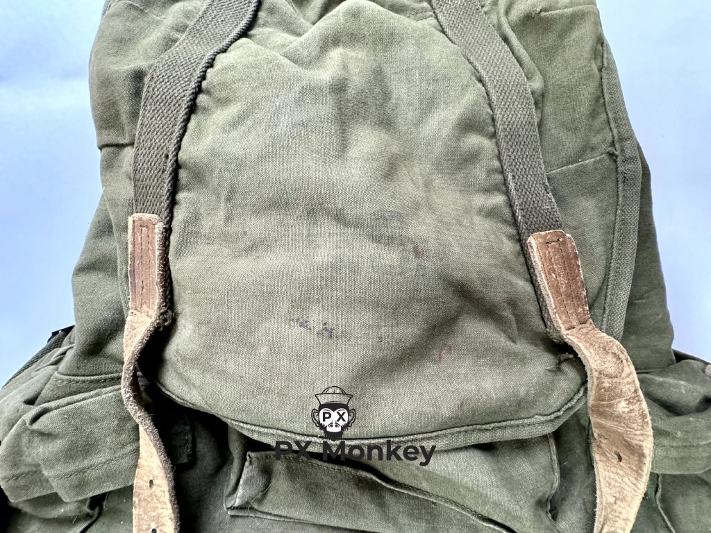 Použitý batoh M1951 Mountain Rucksack. Rok výroby je nečitelný. Zip na vnitřní kapse je funkční. Batoh má jednu díru viz foto.