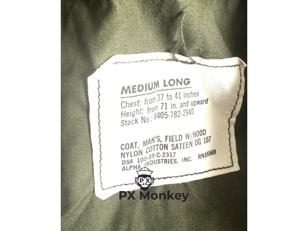 COAT, MAN'S, FIELD, M-65 - MEDIUM Long - 1969 - Alpha Industries