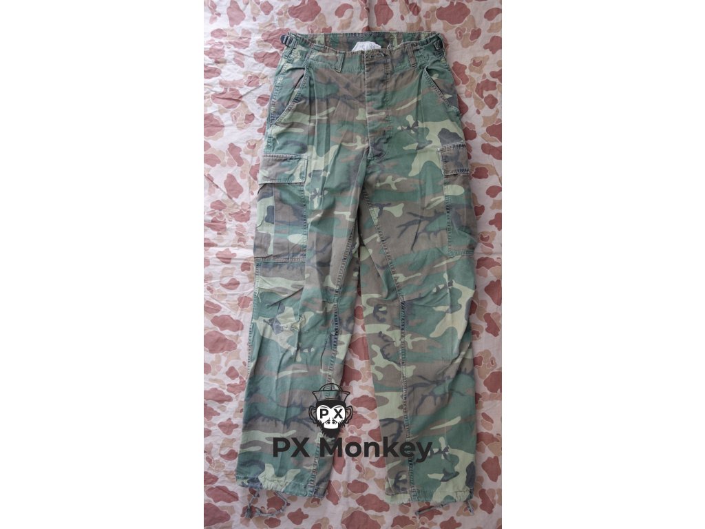 Poplinové kalhoty v maskování ERDL. Pěkný stav na koleni opravená dírka a málá dirka u švu na zadku.Velikost R-S.