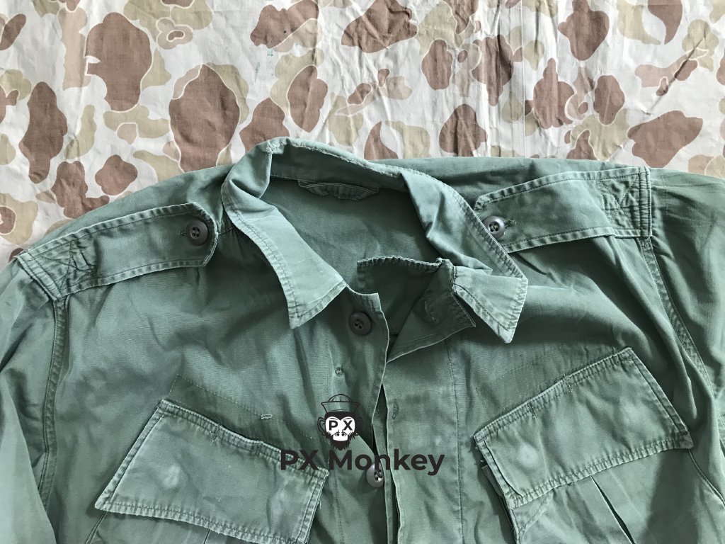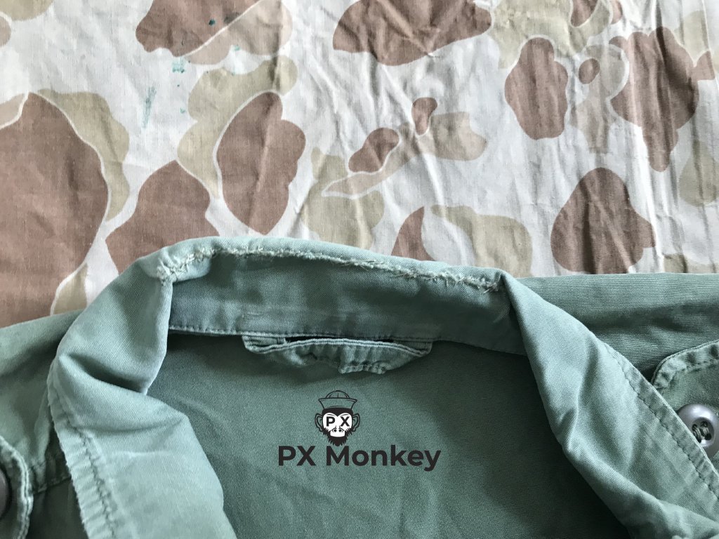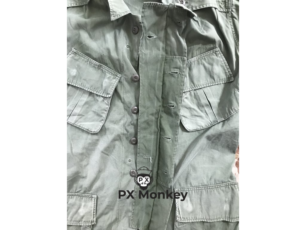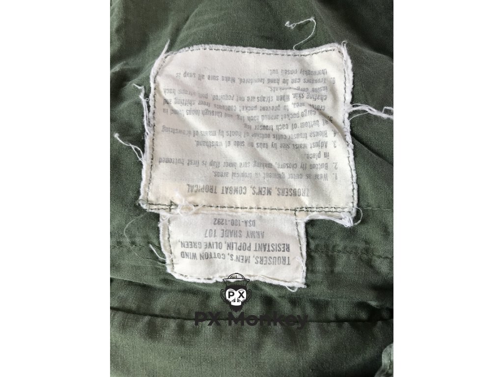 Druhý model tropické uniformy z poplinu. Blůza je velikost M-R (chybí štítky s velikostí) a kalhoty Medium Long. Použitý stav. Kontrakt blůzy DSA 100-2114.