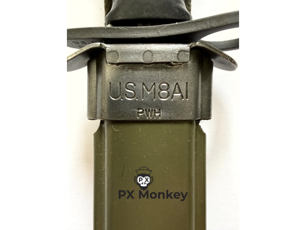 Nepoužitý bodák M7 Conetta s použitým pouzdrem M8A1 od výrobce PWH.