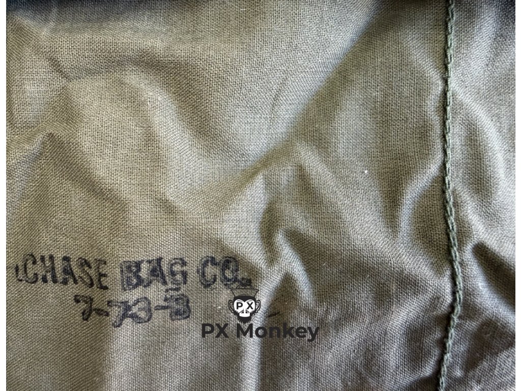 Datace a Značení: Na přední straně je výrazné razítko "CHASE BAG CO." a kód "7-73-B". Chase Bag Company byl obrovský dodavatel těchto obalů. Značení jasně odkazuje na červenec 1973, tedy závěr vietnamského konfliktu.