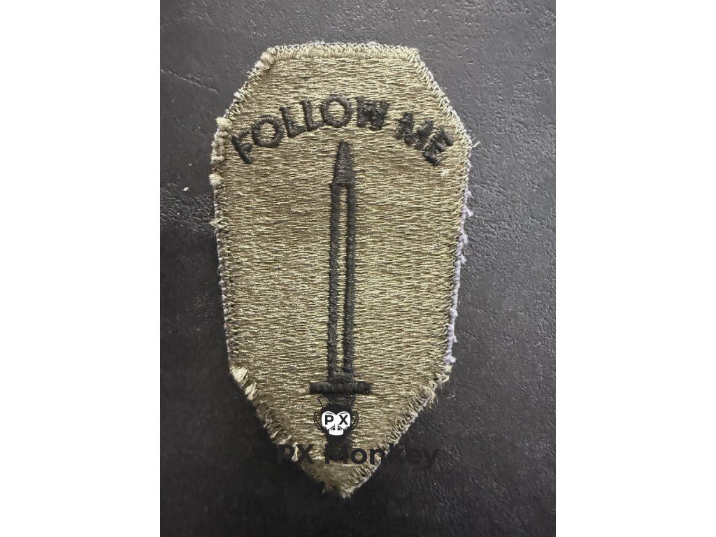 Historie a symbolika: Nášivka patří US Army Infantry School (Fort Benning). Vztyčený bodák symbolizuje podstatu pěchotního boje a nápis "FOLLOW ME" (Následuj mě) je mantrou pěchotních důstojníků a poddůstojníků, kteří musí jít svým mužům v boji vždy příkladem.