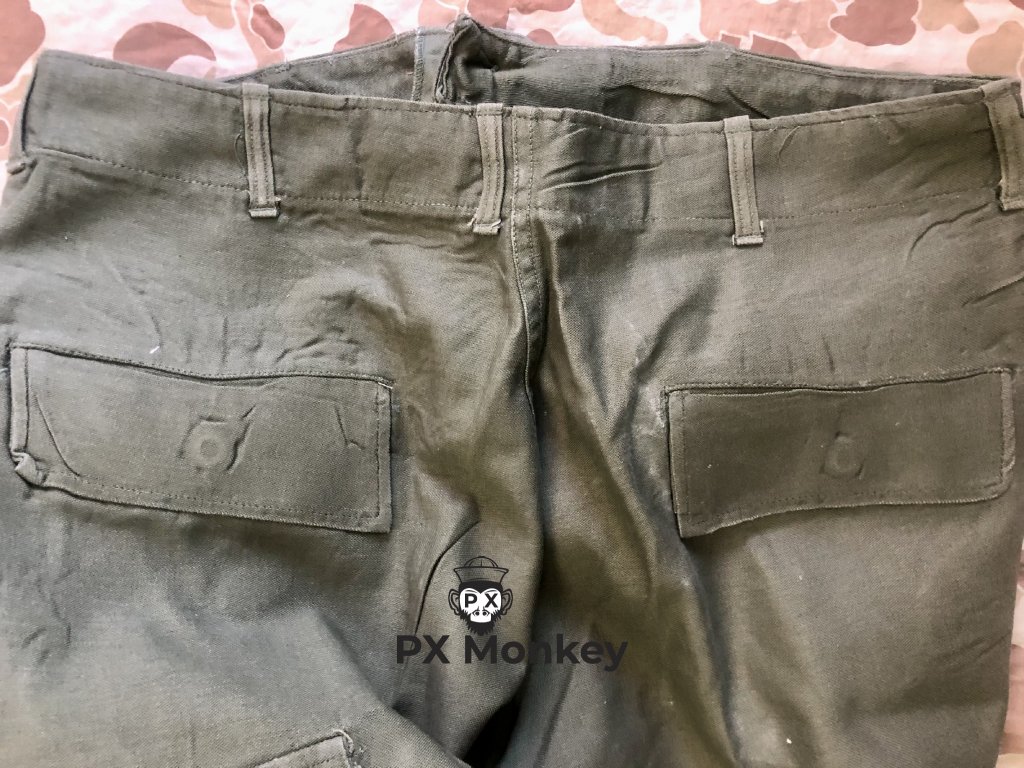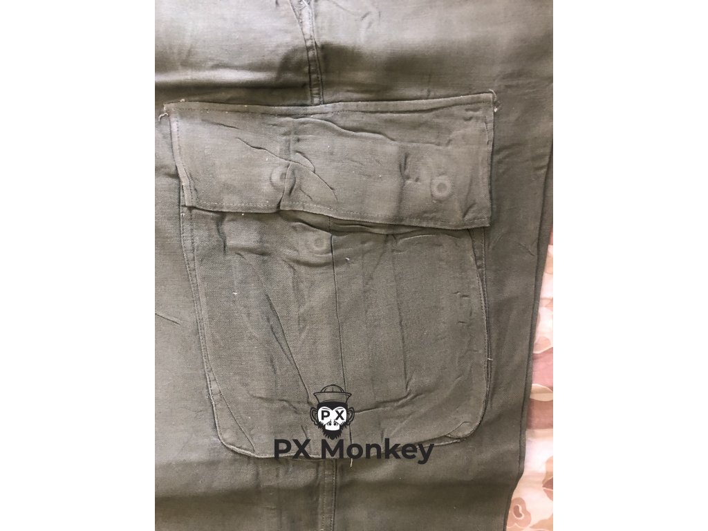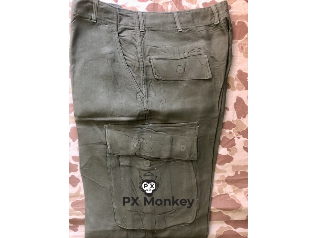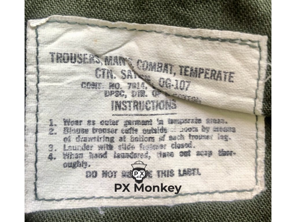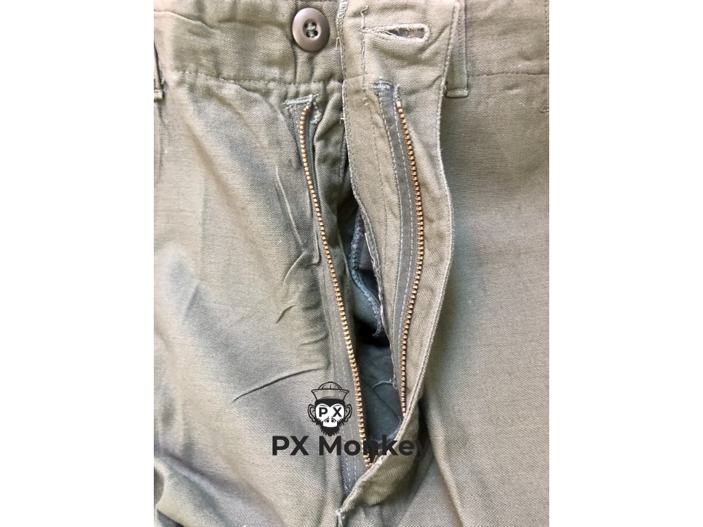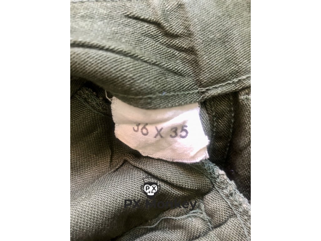 Experimentální kalhoty Trousers, Man's, Combat, Temperate. Velikost 36x35. Materiál CTN, Sateen OG 107. Kalhoty jsou lehce použité, ale bez poškození. Látka je "prkenná" kalhoty jsou naškrobené a vyžehlené.