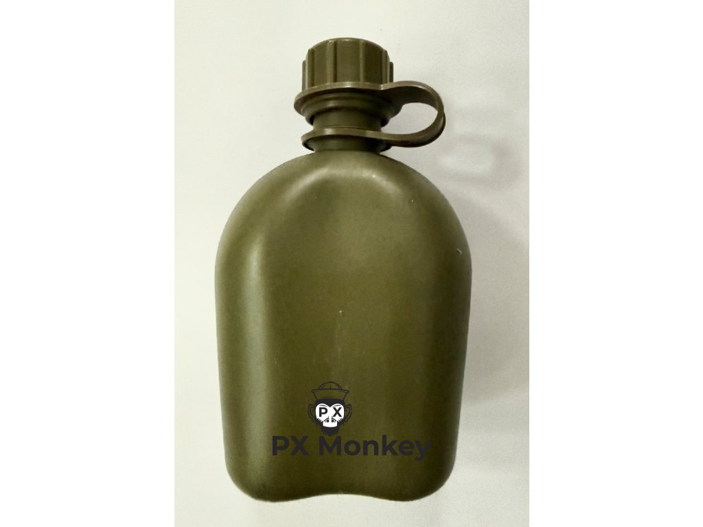 Láhev: Plastová (polyethylene) láhev o objemu 1 quart. Na dně je jasná ražba "U.S. 1969 M.W., INC.". Láhev je bez prasklin, s funkčním uzávěrem.