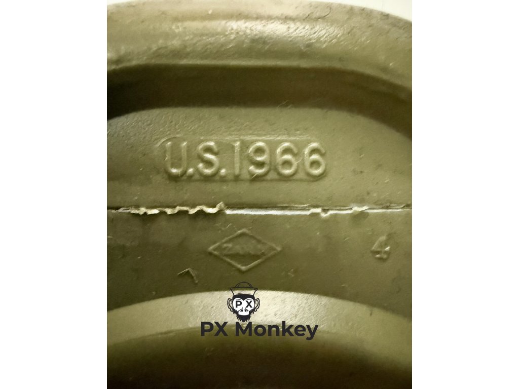 Detail: Tento kus má bavlněný lem (Cotton Trim), což je vyhledávaný detail (pozdější výroba přecházela na nylon). Zapínání na dva druky, vzadu Alice klipy pro uchycení na opasek.