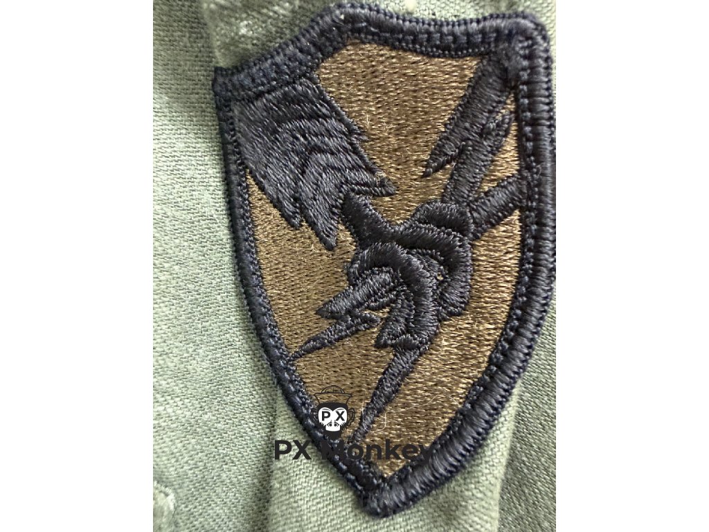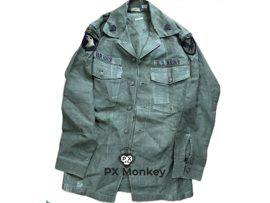 Jednotky (Vzácnost): Na levém rukávu nese košile znak 101st Airborne Division. Na pravém rukávu (bojová příslušnost) je vzácná nášivka US Army Security Agency (ASA) – pařát svírající blesky. ASA ve Vietnamu zajišťovala SIGINT (signální zpravodajství) a elektronický boj, často pod krytím „Radio Research“.