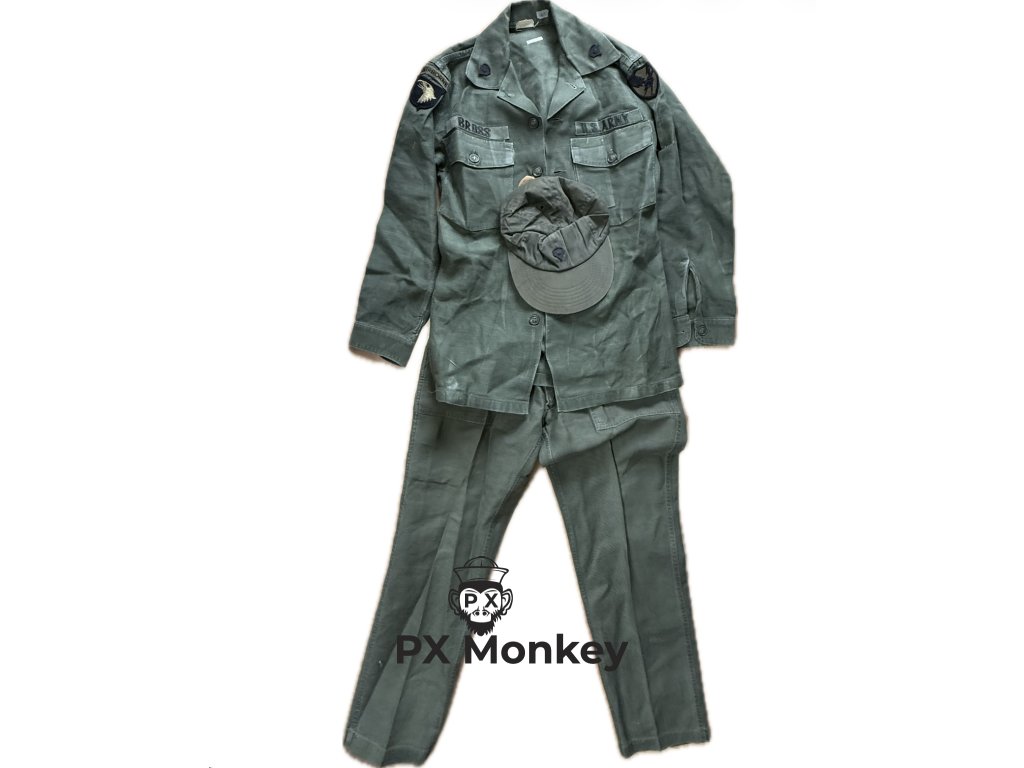Nabízíme špičkový sběratelský set uniformy z války ve Vietnamu, který patřil specialistovi vojenského zpravodajství. Jedná se o „Named Grouping“ se shodným prádelním číslem B0200X na kalhotách i košili.
