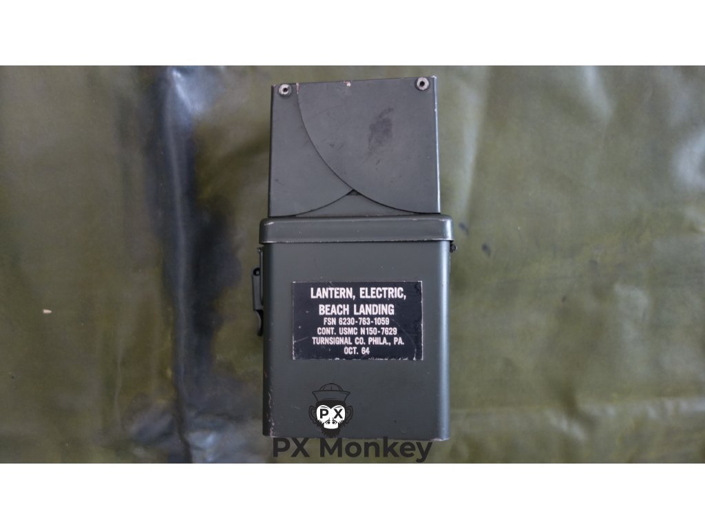 Zajímavá lampa určená pro značení na místě vylodění. Zajímavý sběratelský kousek. Funkčnost nezaručena. Lampa se pomocí šroubu upevňovala na tyč. Součástí je sada barevných filtrů a náhradní žárovky. Rok výroby 1964.