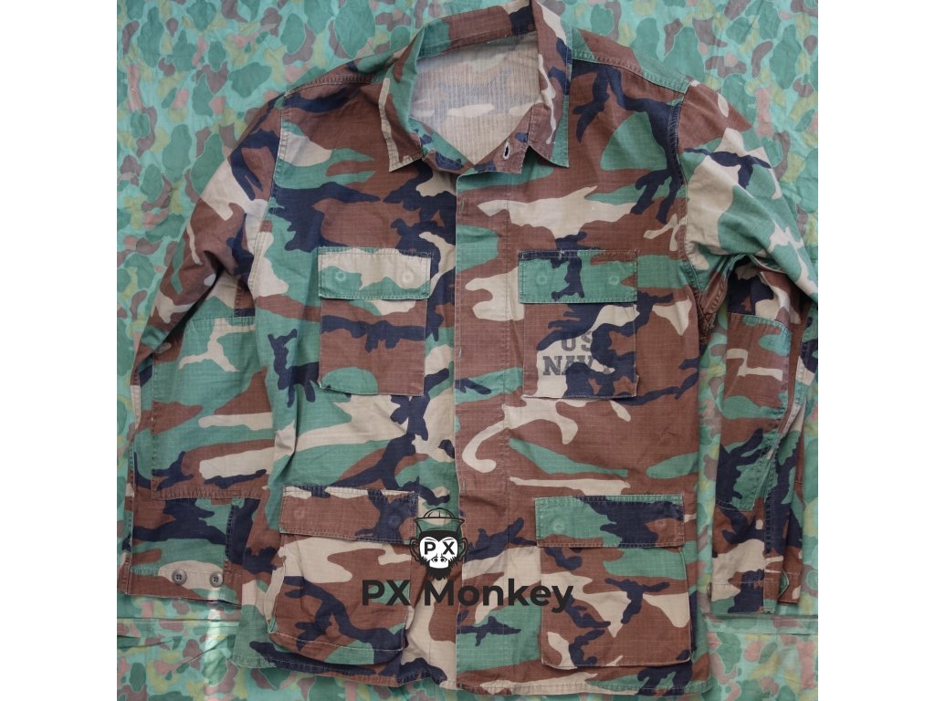Ripstopový set v maskování Woodland. Kalhoty i blůza jsou v pěkném stavu. Na kapse blůzy je značení US. Navy. Blůza je velikost L-L a kalhoty M-R.