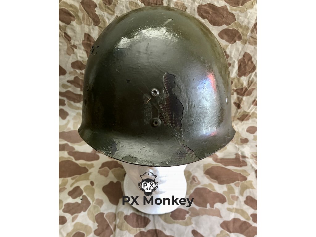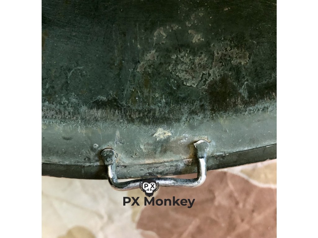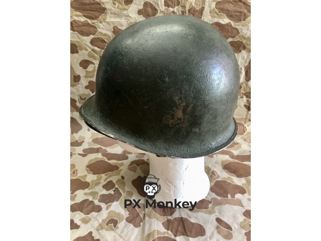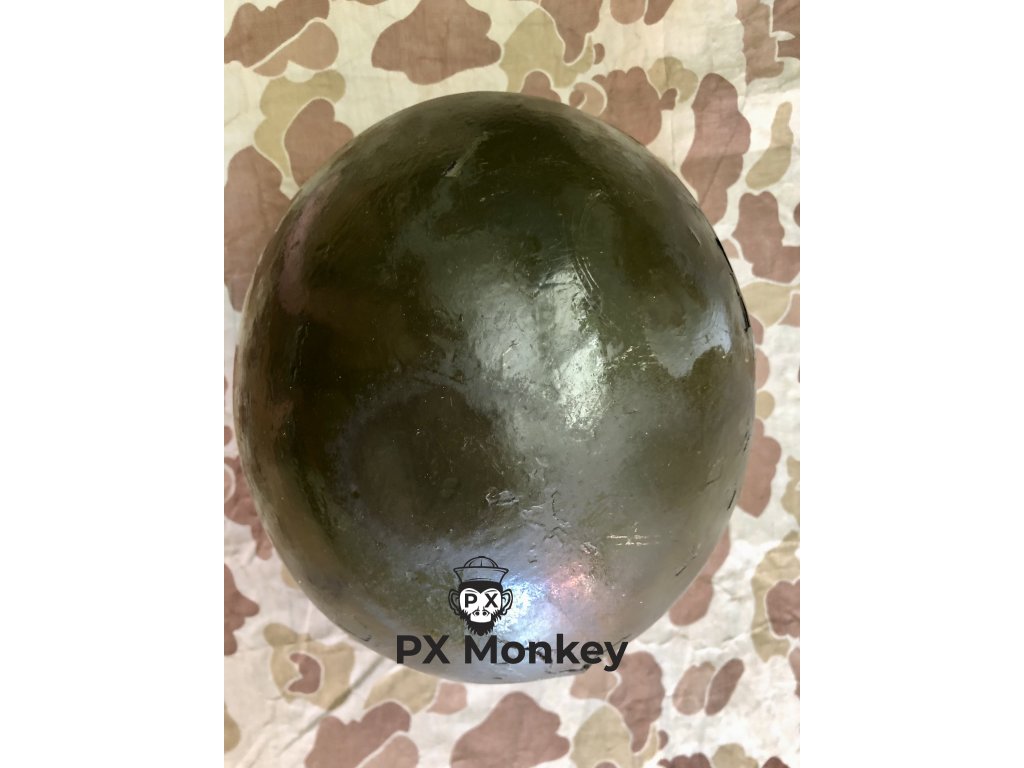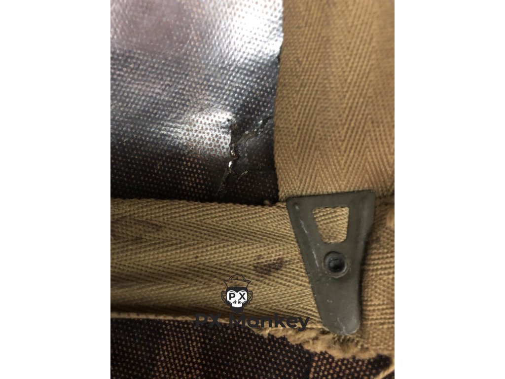 Použitá helma s linerem 26th (Yankee) Infantry Division 101st Regiment. Helma má pevná ouška (fixed bale) a přední spojení obruby (front seam). Heat stamp je viditelný. Liner je od výrobce International Molded Plastics Inc. Liner je natřen silnou vrstvou laku. Po stranách má znaky 26th Infantry Division a 101st Regiment. Liner má dvě praskliny a lak se na několika místech odloupl viz. foto.