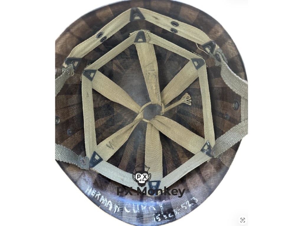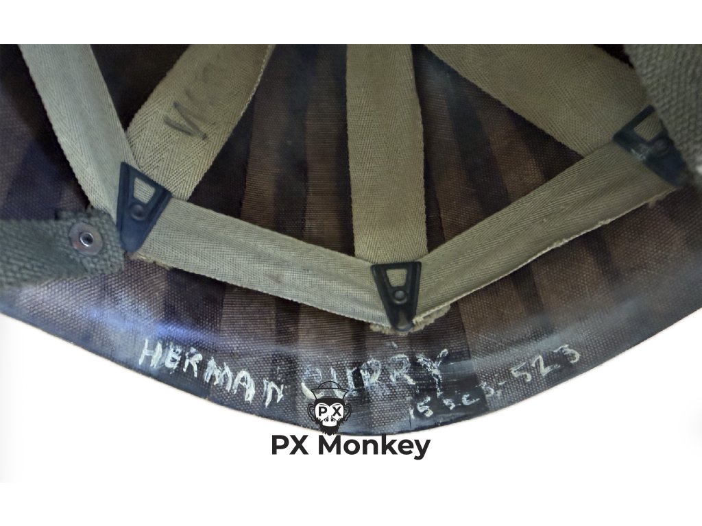 Personifikace: Na vnitřním ráfku helmy je bílou barvou napsáno jméno "HERMAN CURRY" a číslo "15523523". Představuje to fantastický základ pro historické bádání a dohledání válečného osudu tohoto konkrétního vojáka v archivech.