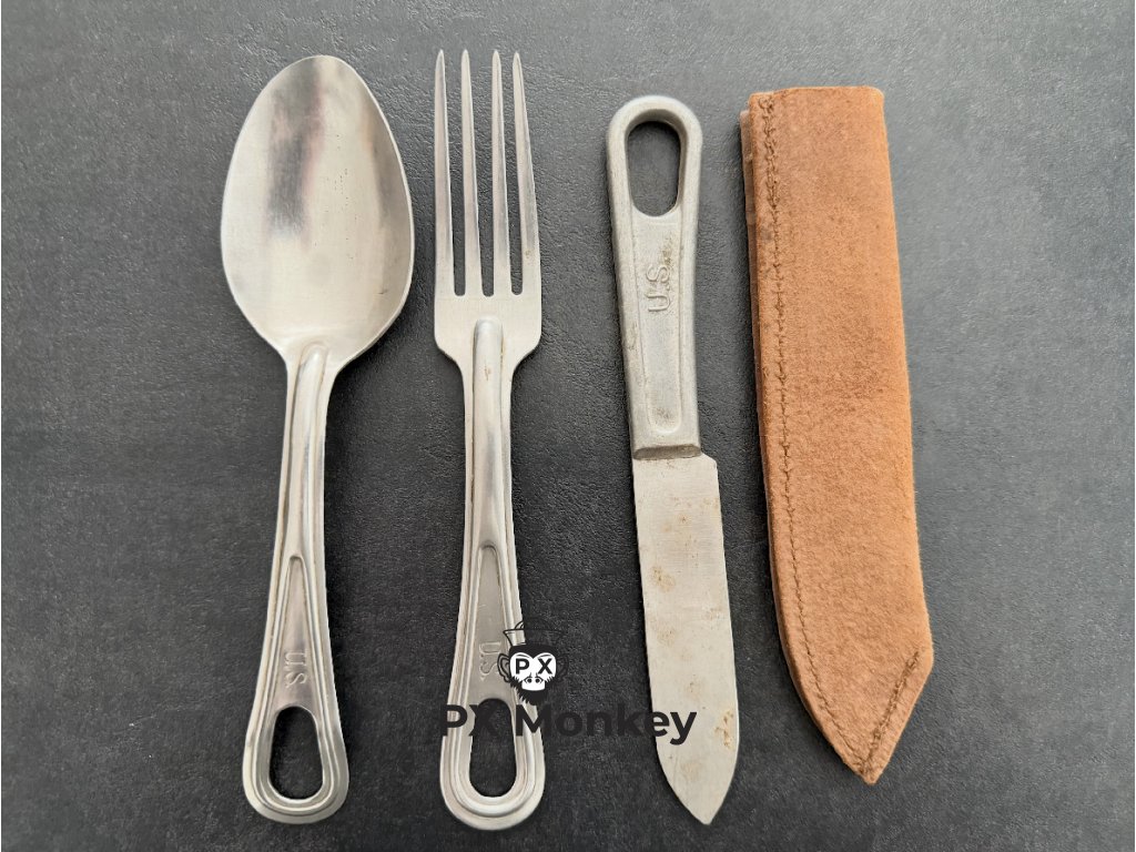 Originální US WWII jídelní sada (Ešus + Příbor) | E.A. Co. 1943 | Podepsáno veteránem