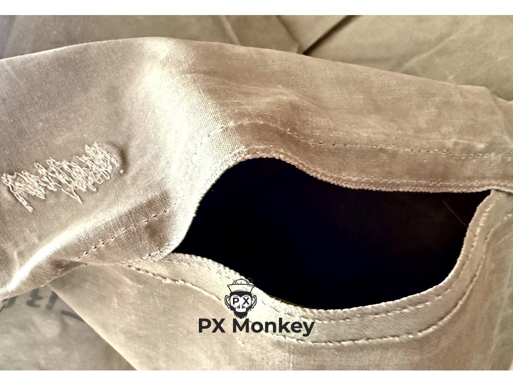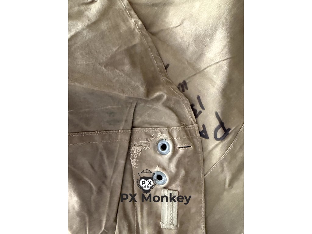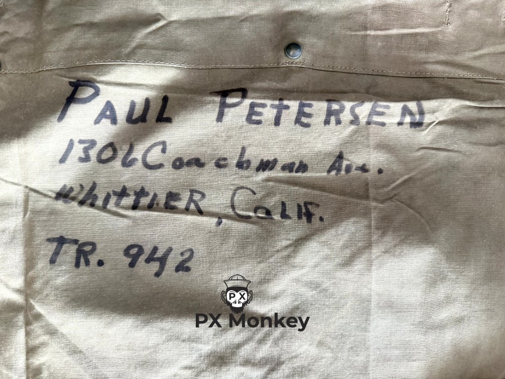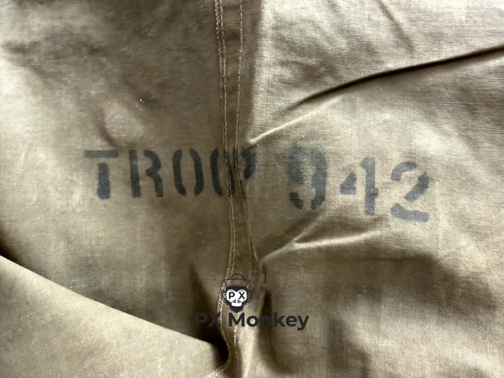 Použitá US celta z roku 1945. Celta má několik oprav a skvrn. Je viditelně značena jménem a útvarem původního majitele Paul Petersen. Na jednom místě je vypuštěný šev o délce cca 20cm.