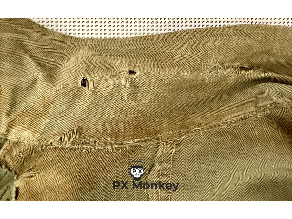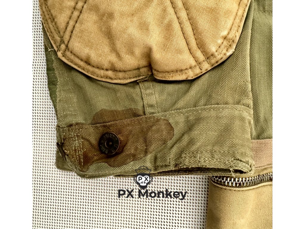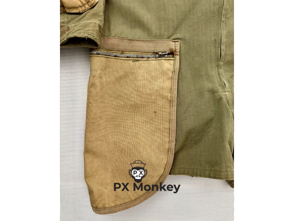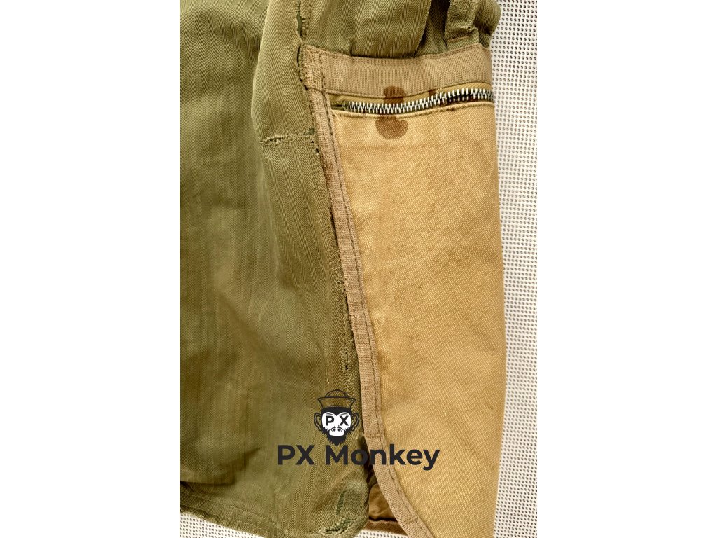 Unikátní první typ výsadkového kabátce pro USMC Paramarines v zelené barvě. Jedná se o kus z druhé produkční řady s kapsou na nůž. Kabát je ve více použitém stavu. Velikost odpovídá Small. Zipy jsou funkční. Bunda má více oprav a skvrn viz. foto.