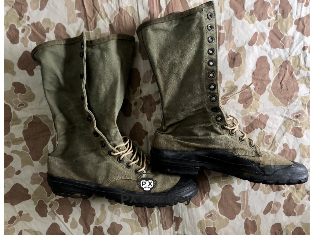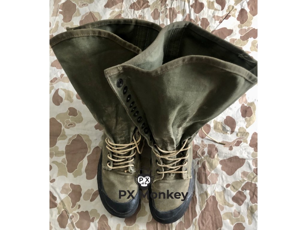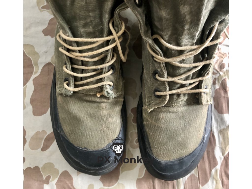 Použité Jungle Boots. Velikost 8. Původní dlouhé tkaničky jsou nahrazeny krátkými. Razítko s rokem výroby není viditelné. Boty jsou celkove v dobrém stavu bez poškození.