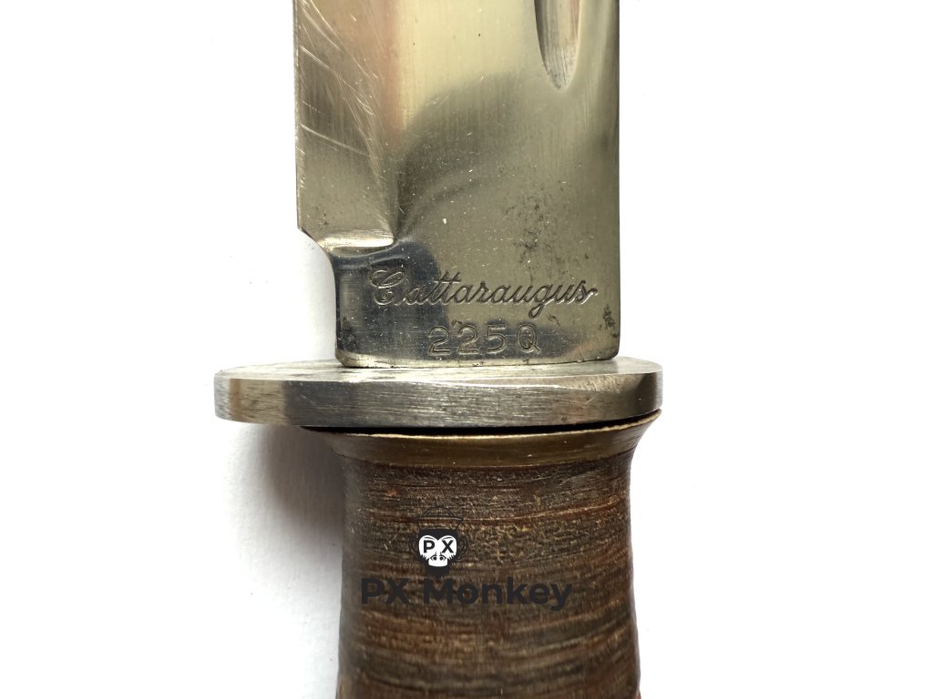Pěkný originální nůž Cattaraugus 225Q z druhé světové války, s 6 palcovou čepelí. Vyrobeno společností Cattaraugus Cutlery Company.